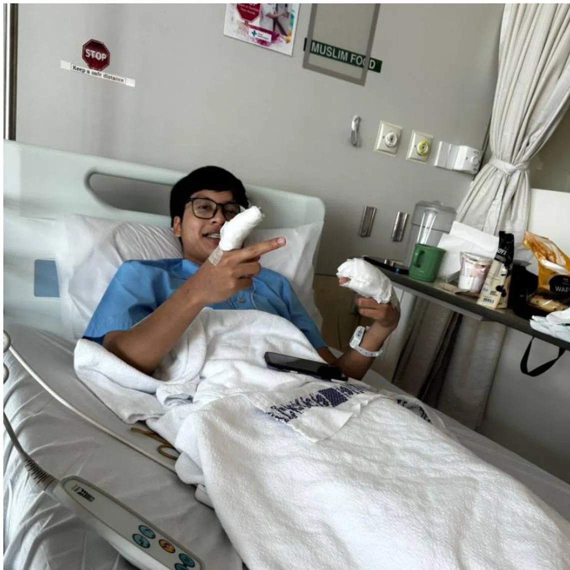 Mr Ilham Jufri received around two to three stitches on each finger on Aug 4 during a three-hour surgical procedure.